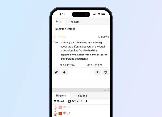 Speaker identification transcription includes labeling each speaker within the transcript. This service is often used for interviews, panel discussions, or multi-speaker events where it’s important to know who said what.